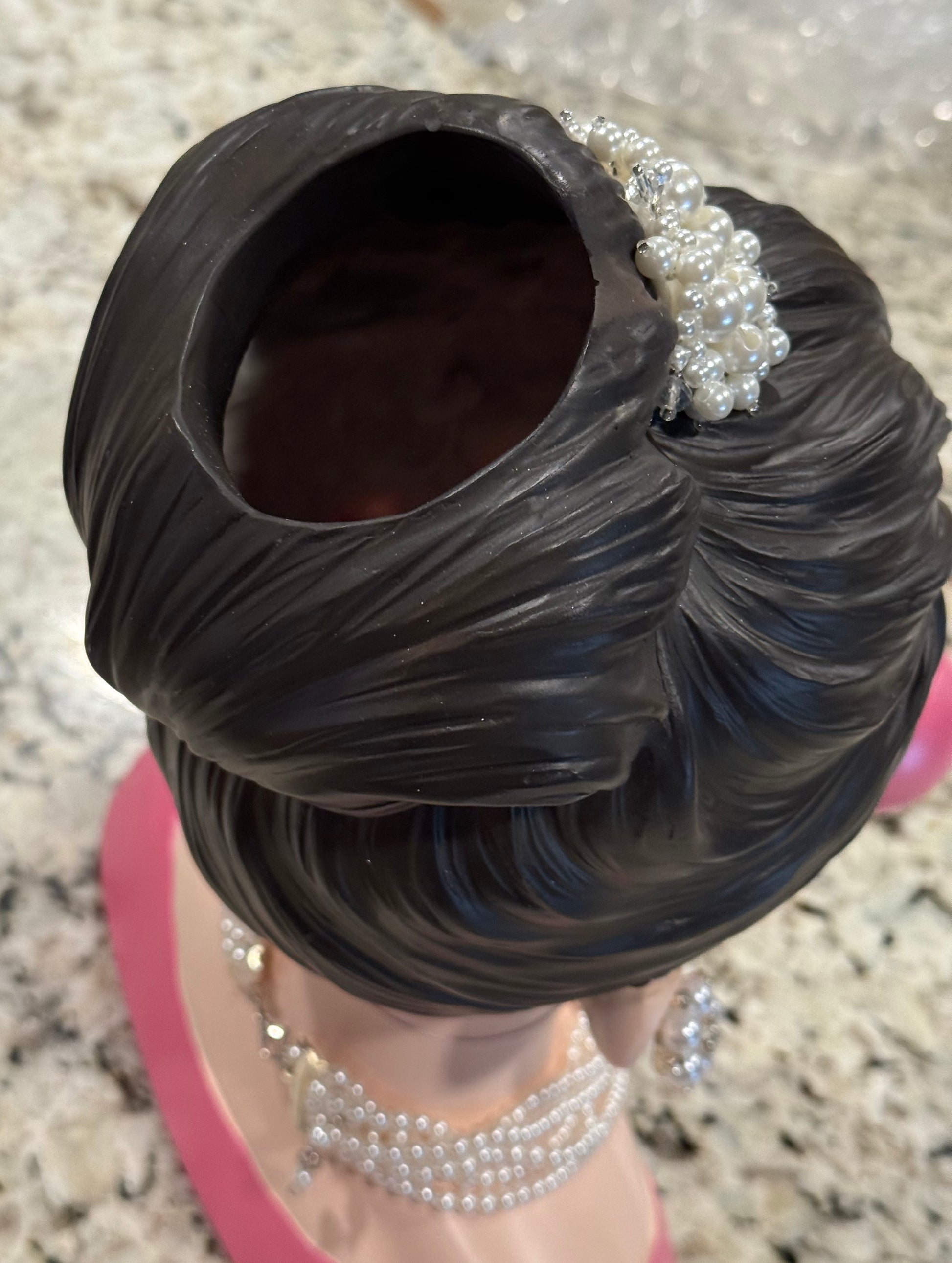 New December Diamonds 12in Pink Bubblegum Girl Head Vase