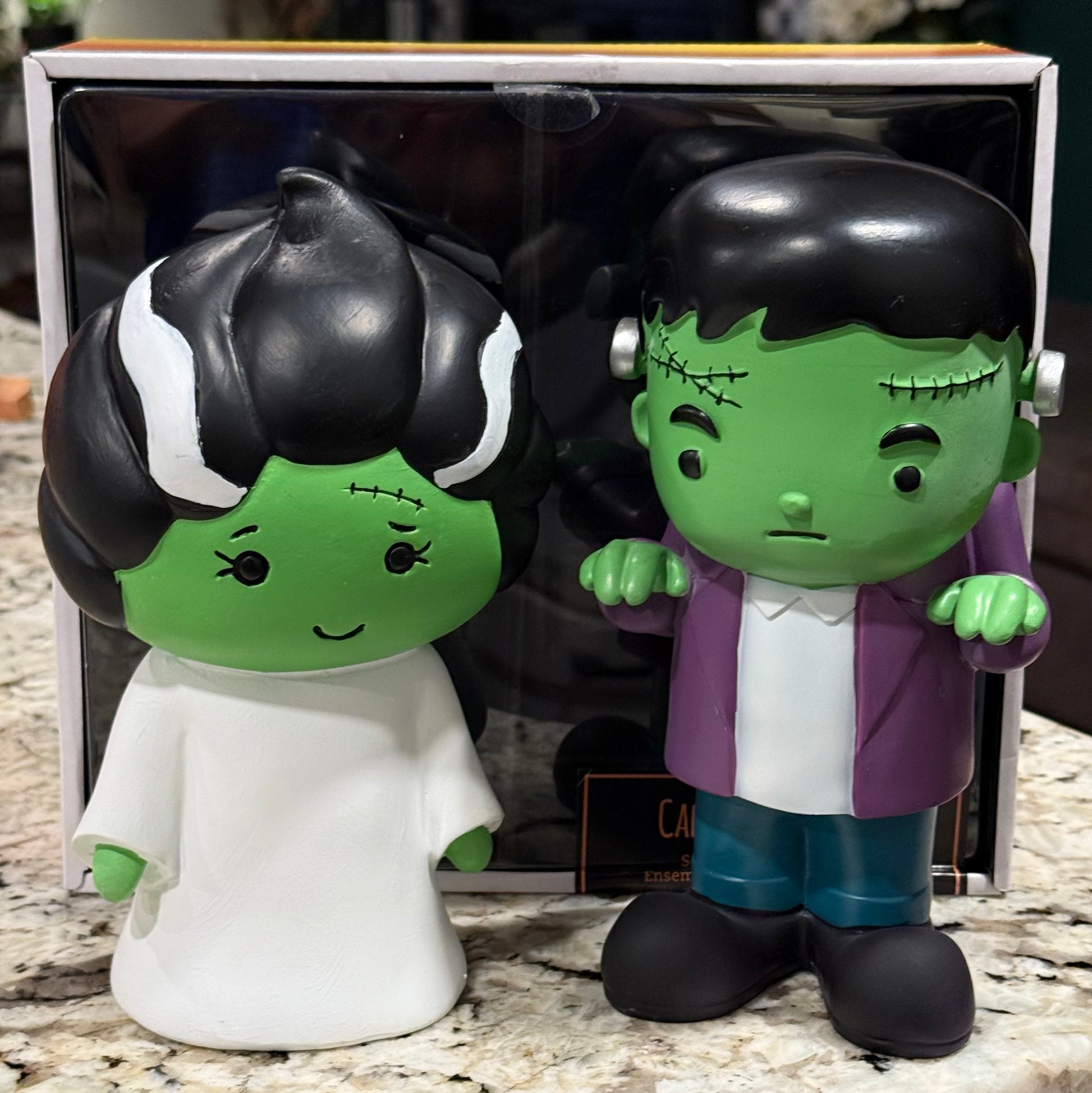 New Candy Corn Lane 7” resin Frankenstein & Bride boxed decor set
