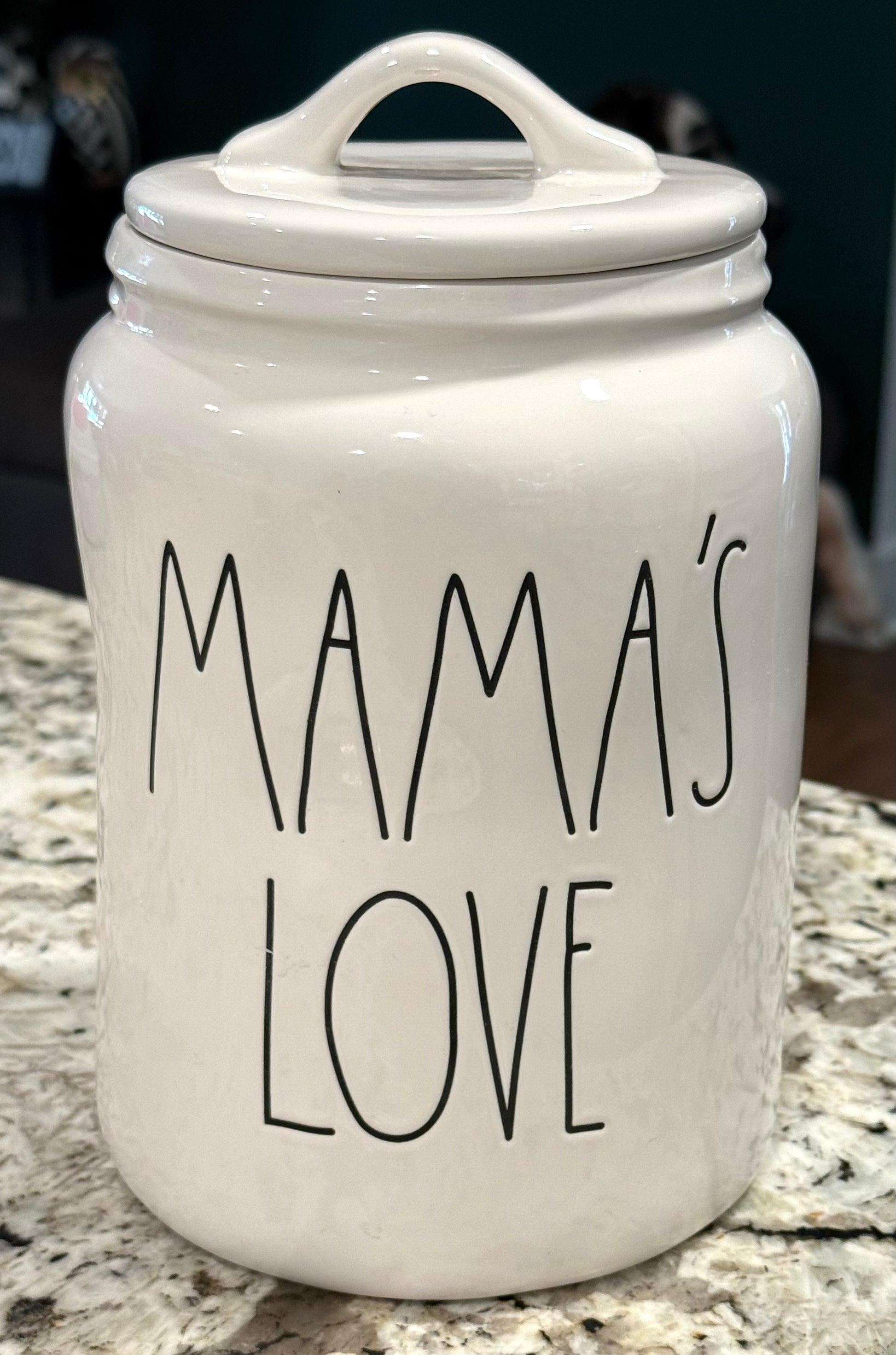 New Rae Dunn 9” ceramic white flat lid canister MAMA’S LOVE