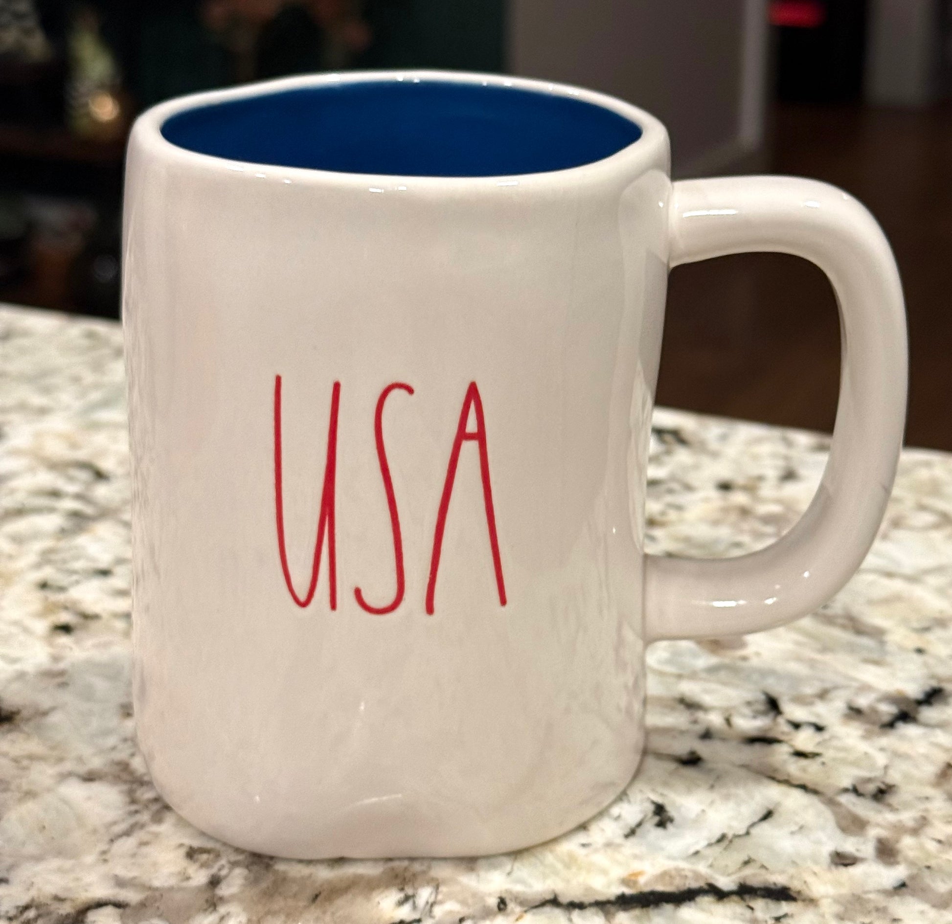 New Rae Dunn Americana white ceramic blue interior coffee mug USA