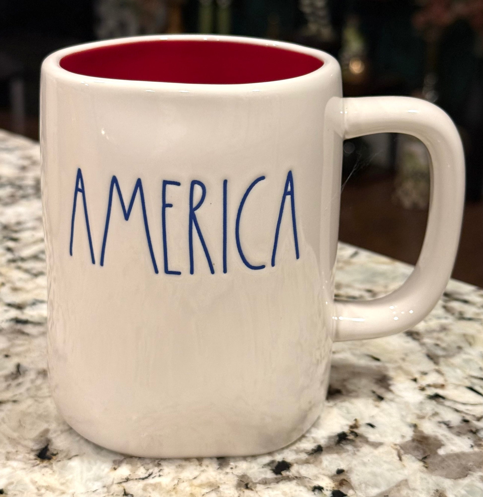 New Rae Dunn Americana white ceramic red interior coffee mug AMERICA