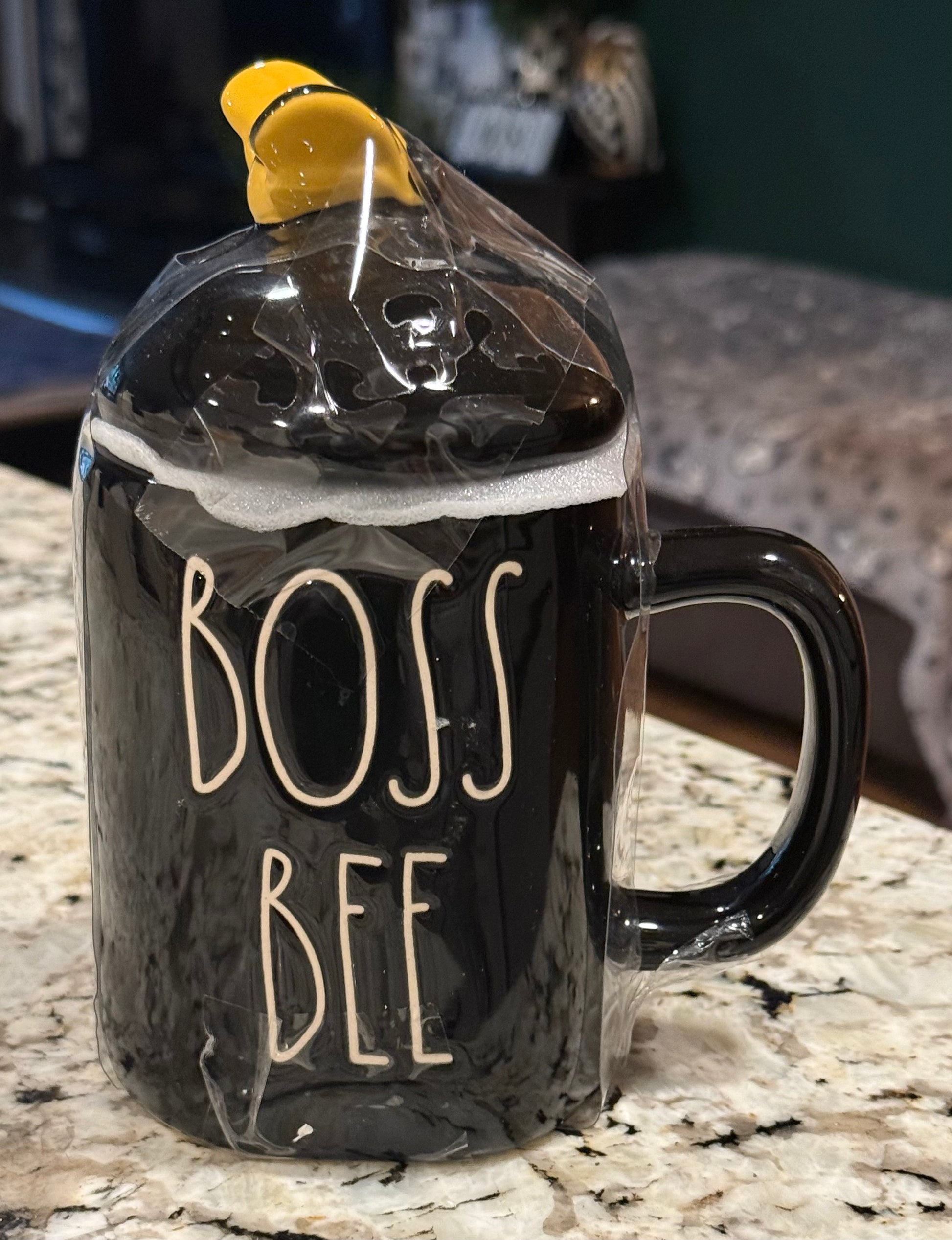 New Rae Dunn black ceramic BOSS BEE 🐝 topped coffee mug decor
