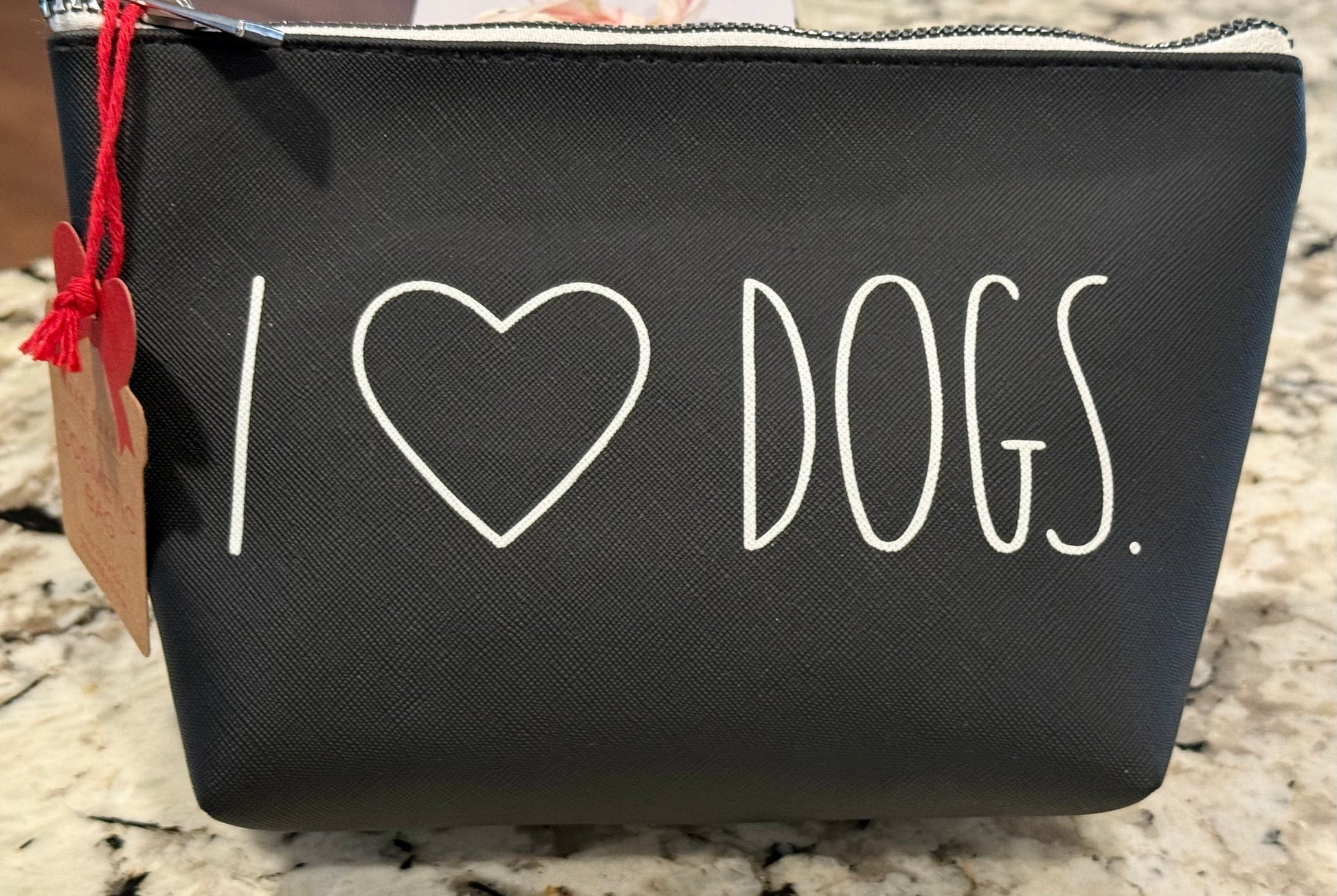 New Rae Dunn black cosmetics makeup storage bag I ❤️DOGS.