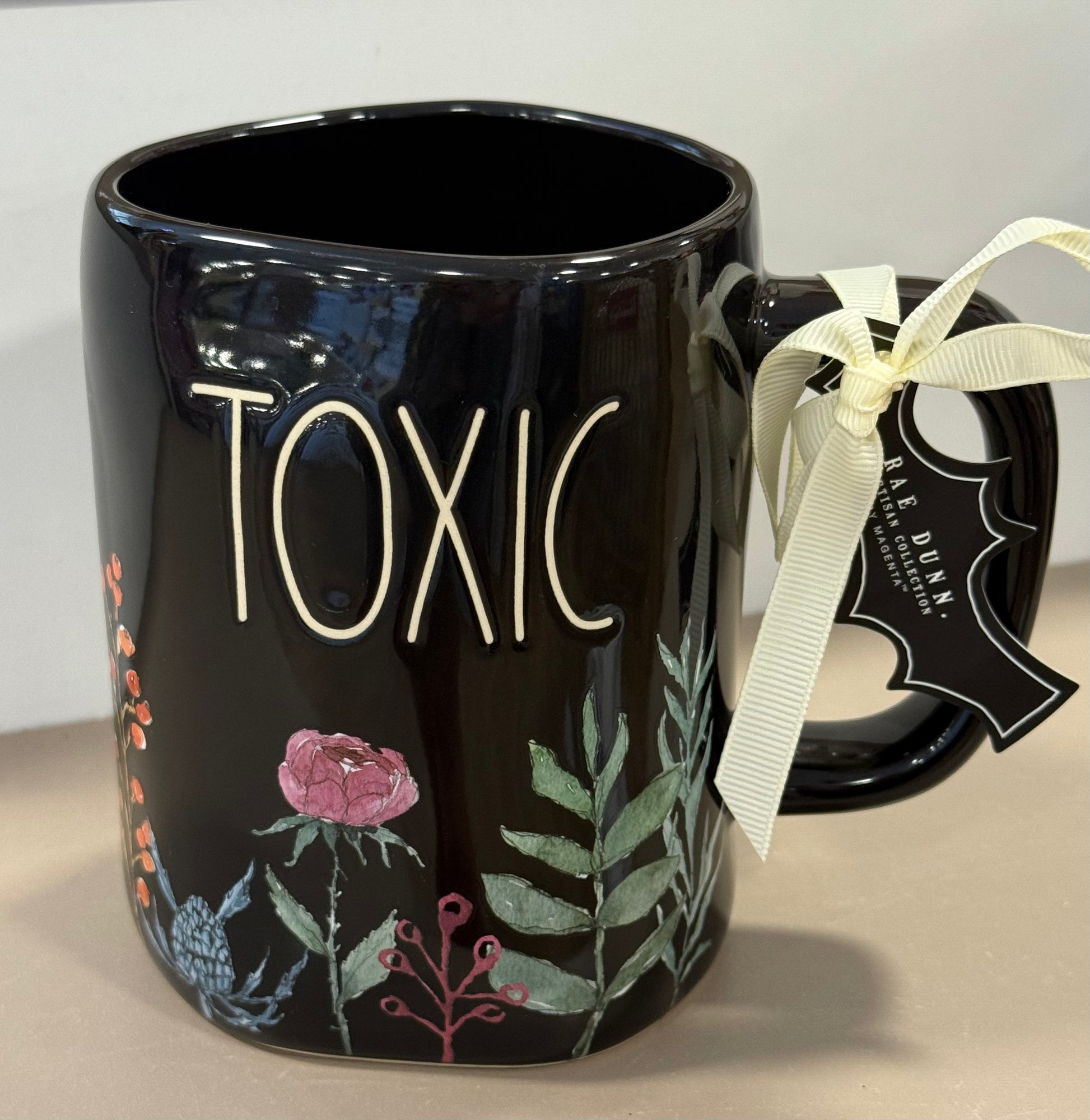 New Rae Dunn black floral iridescent Halloween coffee mug TOXIC