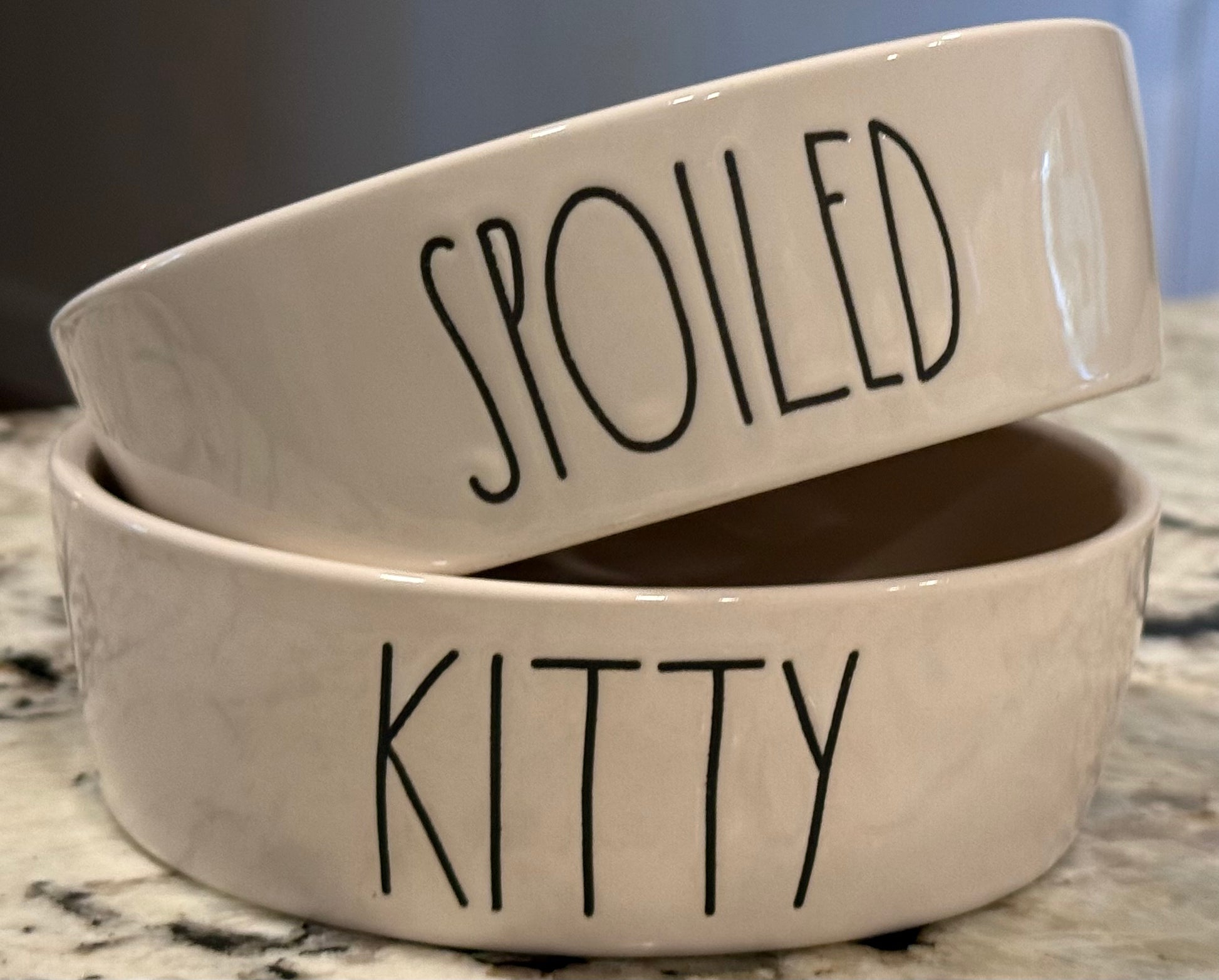 New Rae Dunn ceramic 2-piece cat dish set SPOILED KITTY