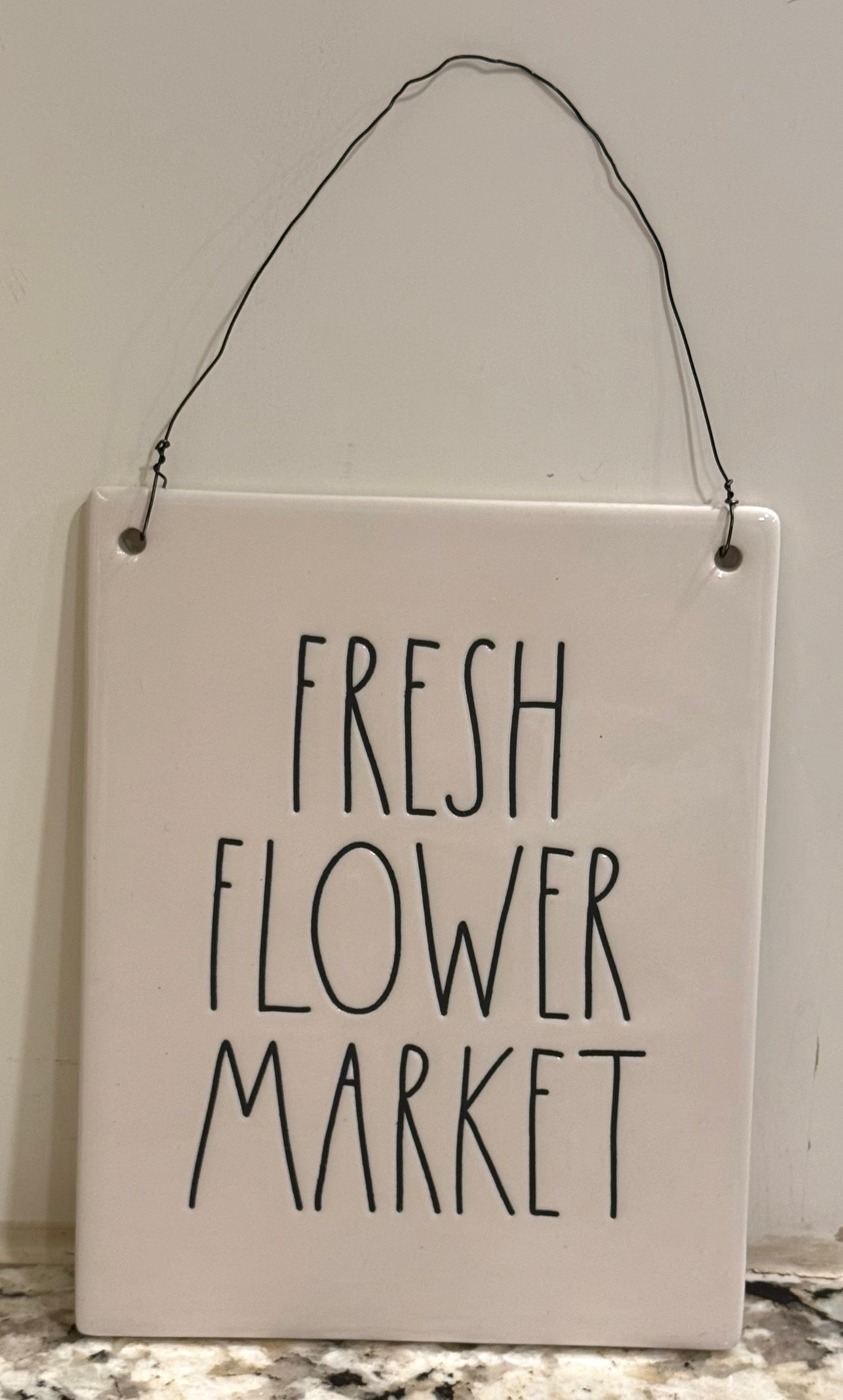 New Rae Dunn ceramic 7.5x7 wall hanging sign FRESH FLOWER MARKET