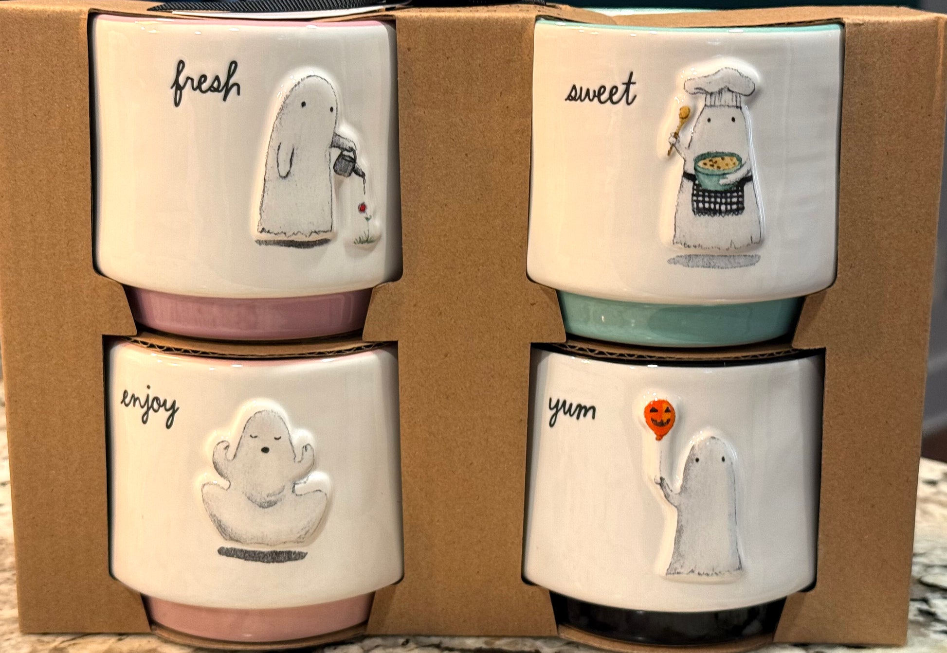 New Rae Dunn ceramic Halloween 4-piece ghost ramekin set