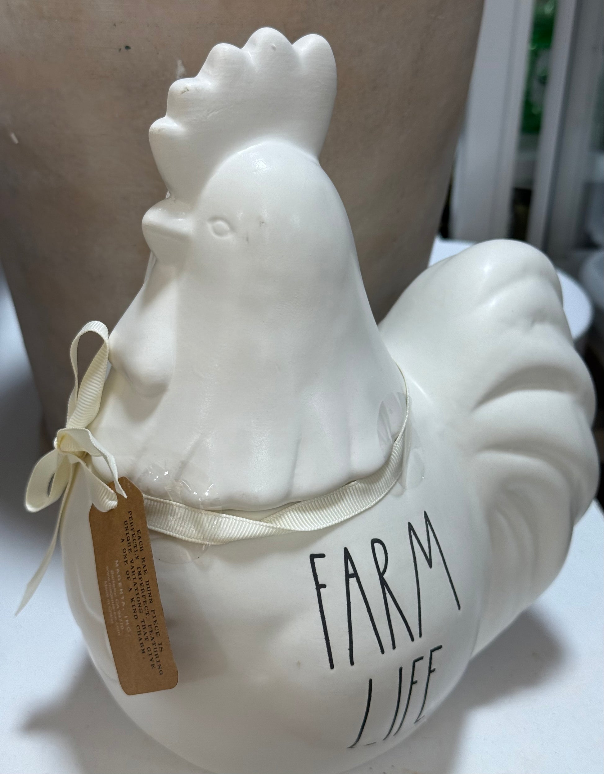 New Rae Dunn ceramic rooster cookie jar FARM LIFE
