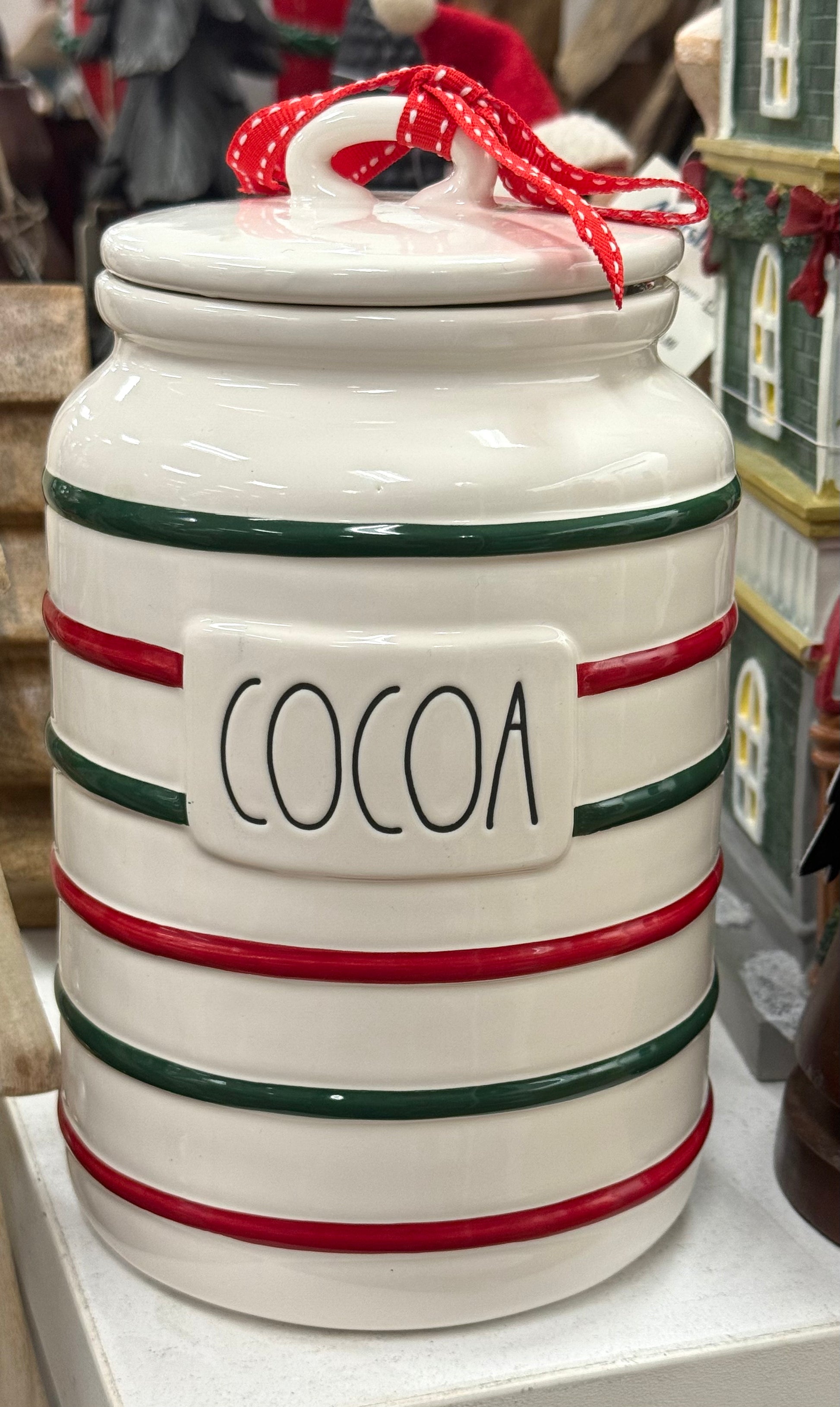 New Rae Dunn ceramic striped COCOA Christmas canister