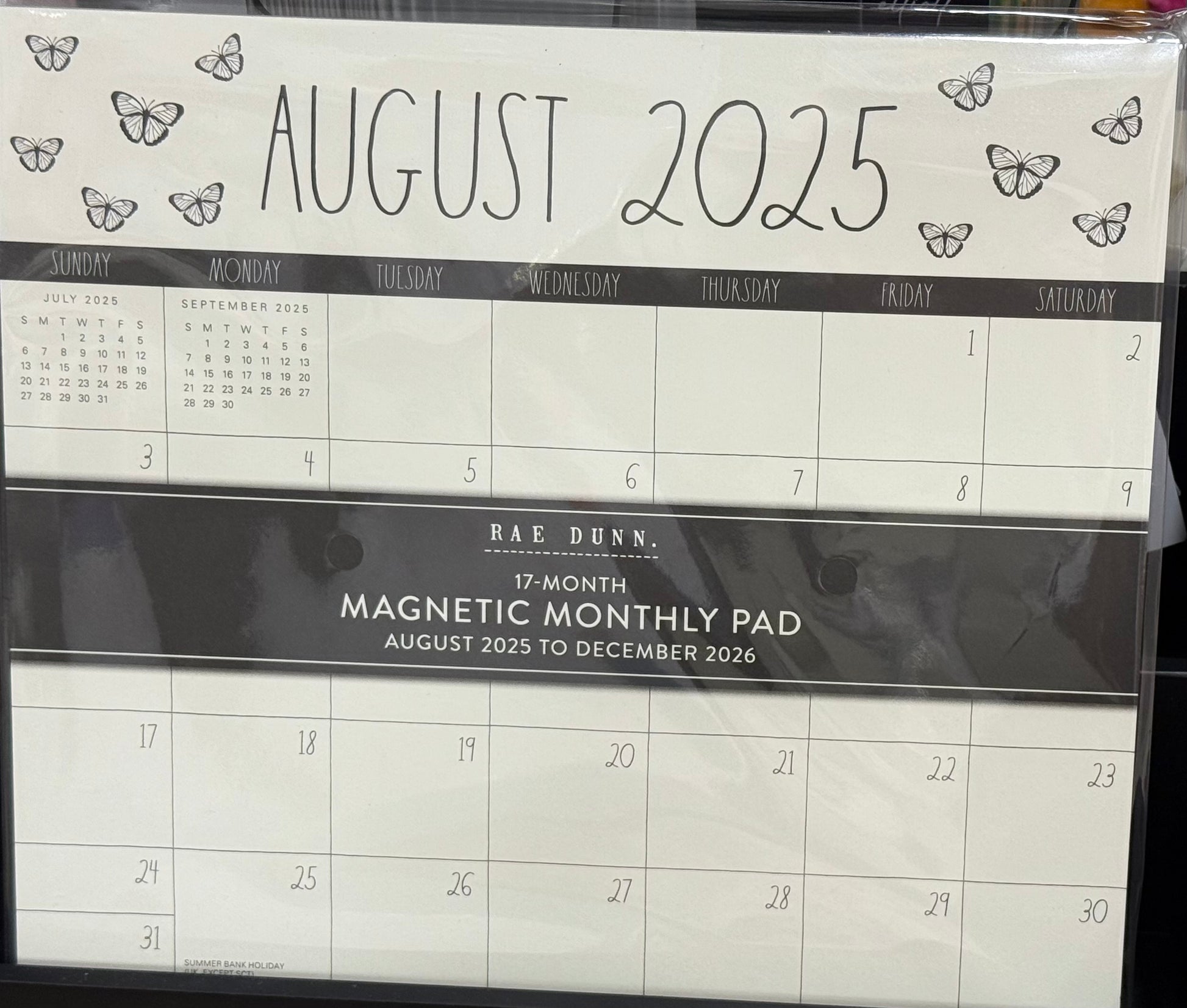 New Rae Dunn magnetic 2025/26 butterfly print tear off monthly calendar