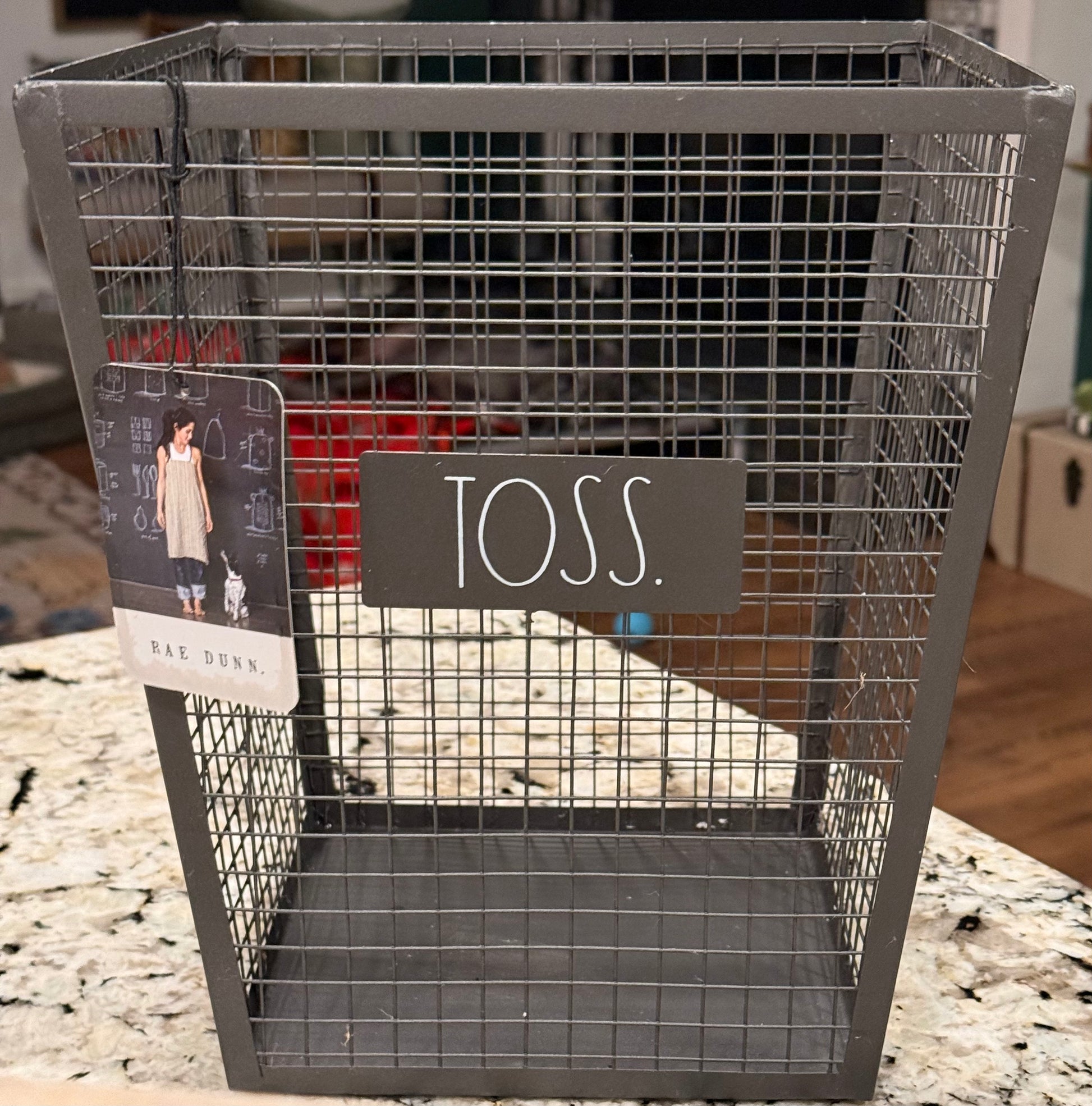 New Rae Dunn metal waste basket TOSS 12x10.25