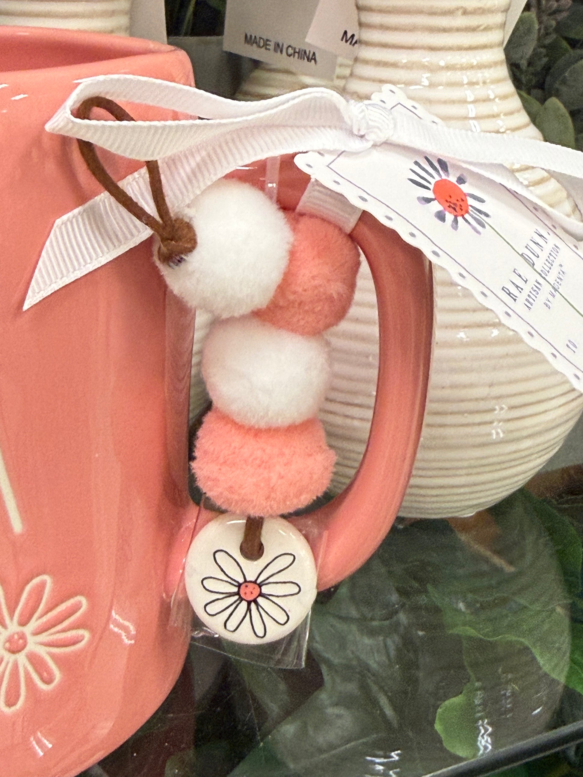 New Rae Dunn pink floral ceramic coffee mug with charm NANA