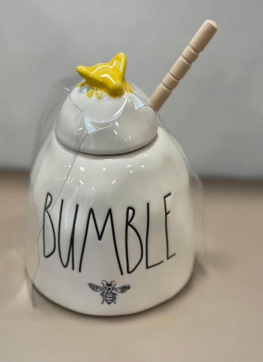 New Rae Dunn white ceramic 🐝 honey pot & stirer BUMBLE