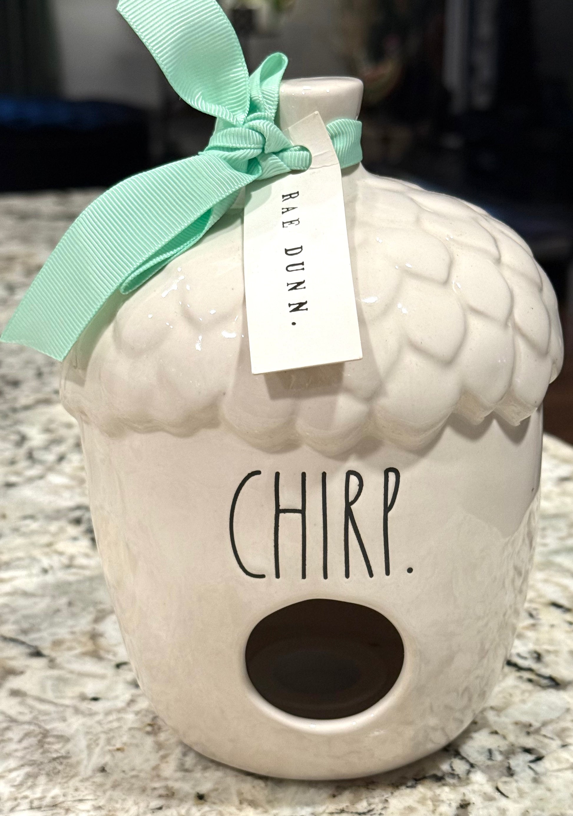 New Rae Dunn white ceramic acorn style birdhouse CHIRP