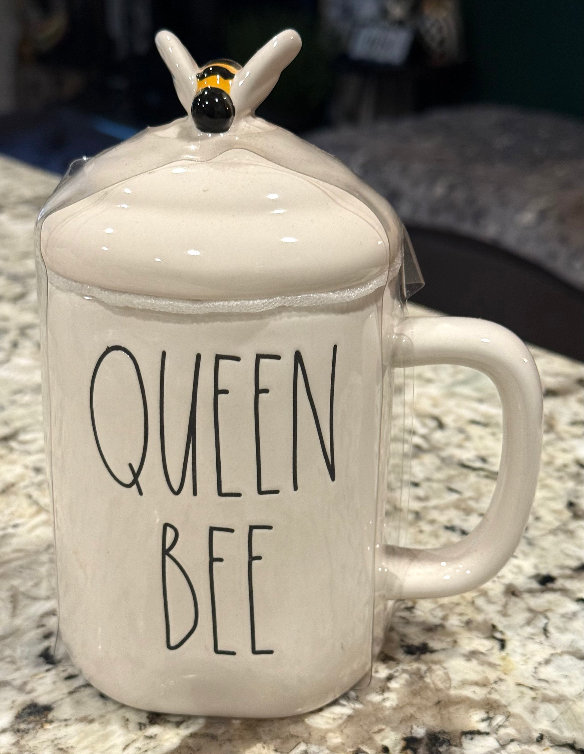 New Rae Dunn white ceramic QUEEN BEE 🐝 topped coffee mug decor