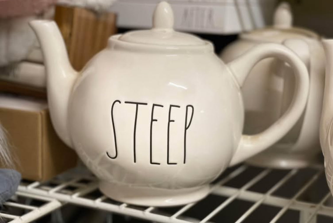 New Rae Dunn white ceramic STEEP teapot