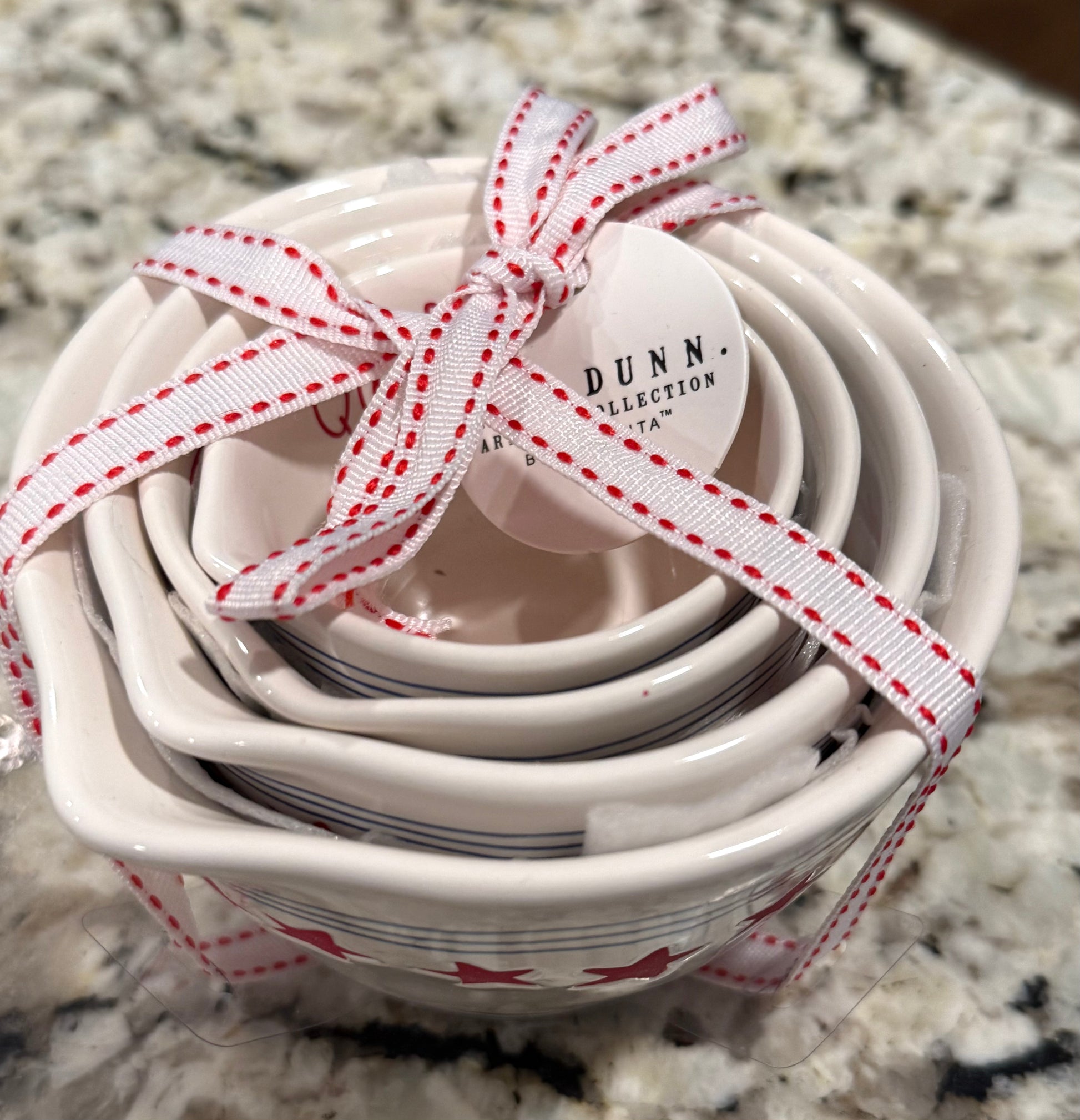 New Rae Dunn white ceramic πΊπΈ USA stars & stripes measuring cup set