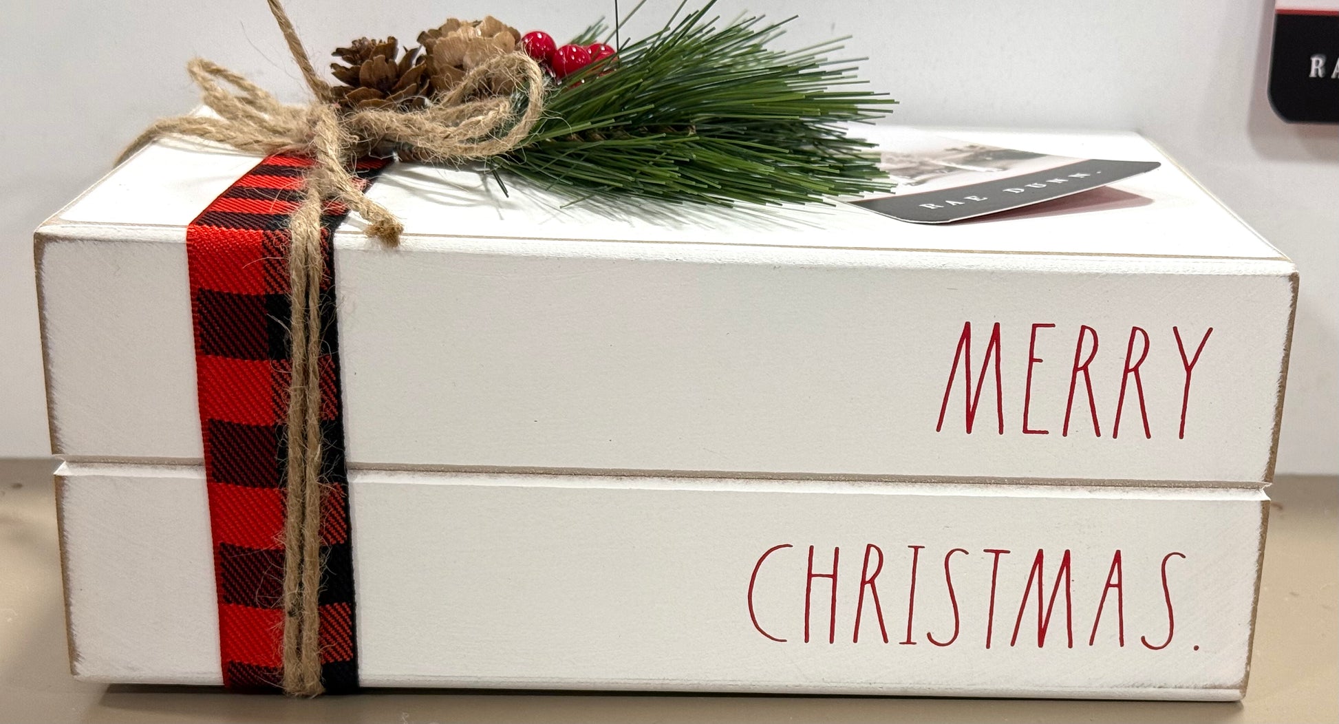 New Rae Dunn white wood holiday book stack MERRY CHRISTMAS