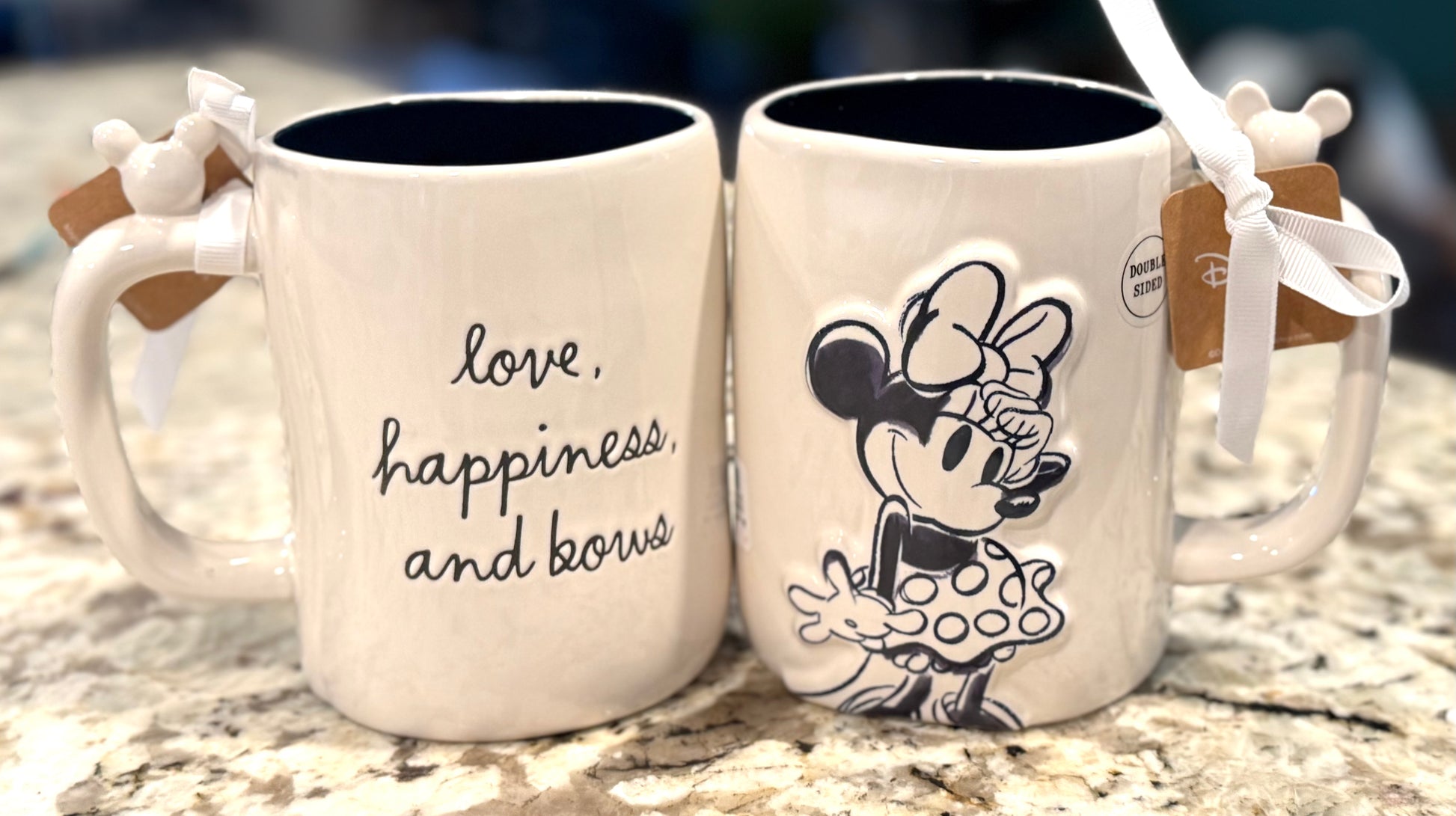 New Rae Dunn x Disney’s Minnie Mouse ceramic coffee mug, LOVE, HAPPINESS, AND BOWS