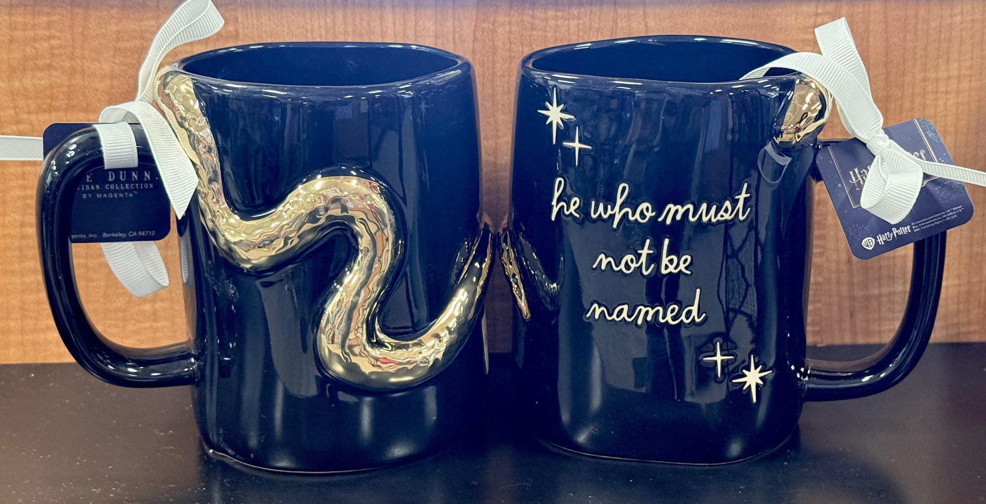 New Rae Dunn x Harry Potter black piridescent coffee mug HE WHO MUST NOT BE NAMED