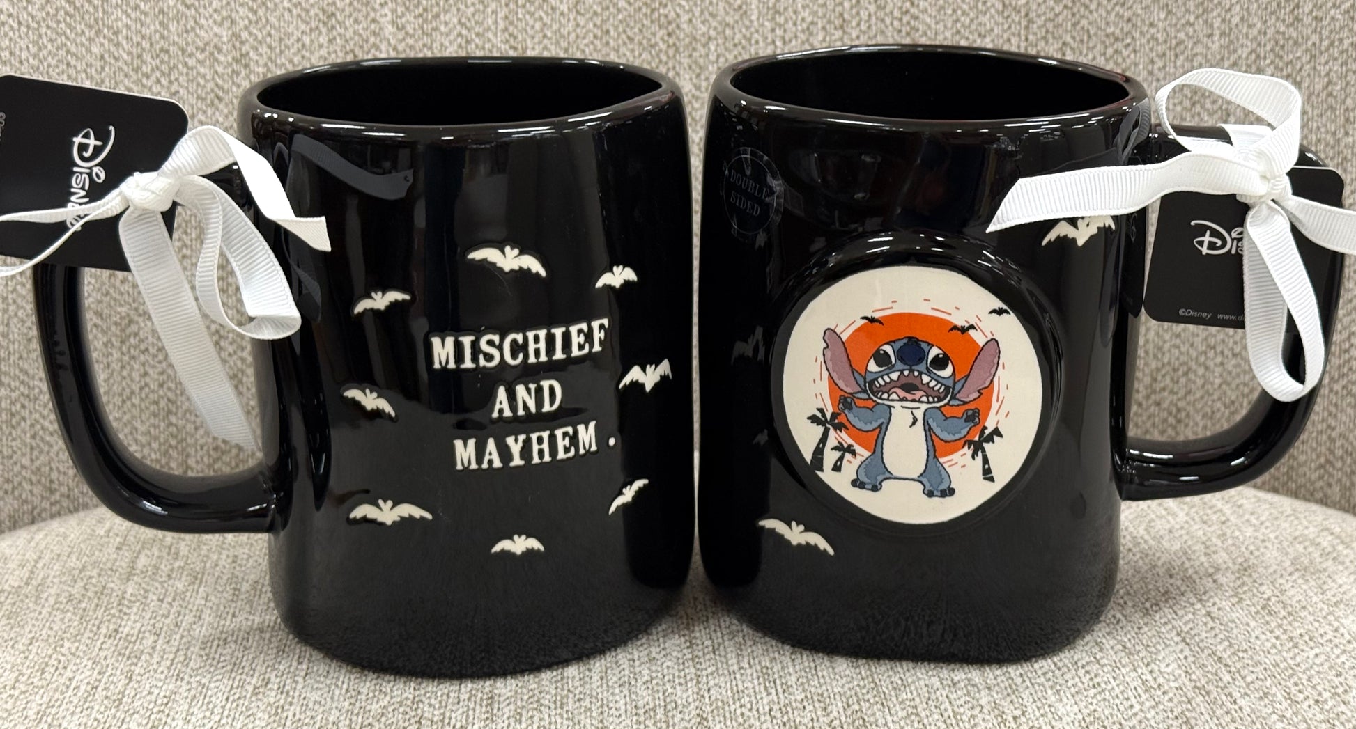 New Rae Dunn x Lilo & Stitch black iridescent ceramic coffee mug MISCHIEF AND MAYHEM