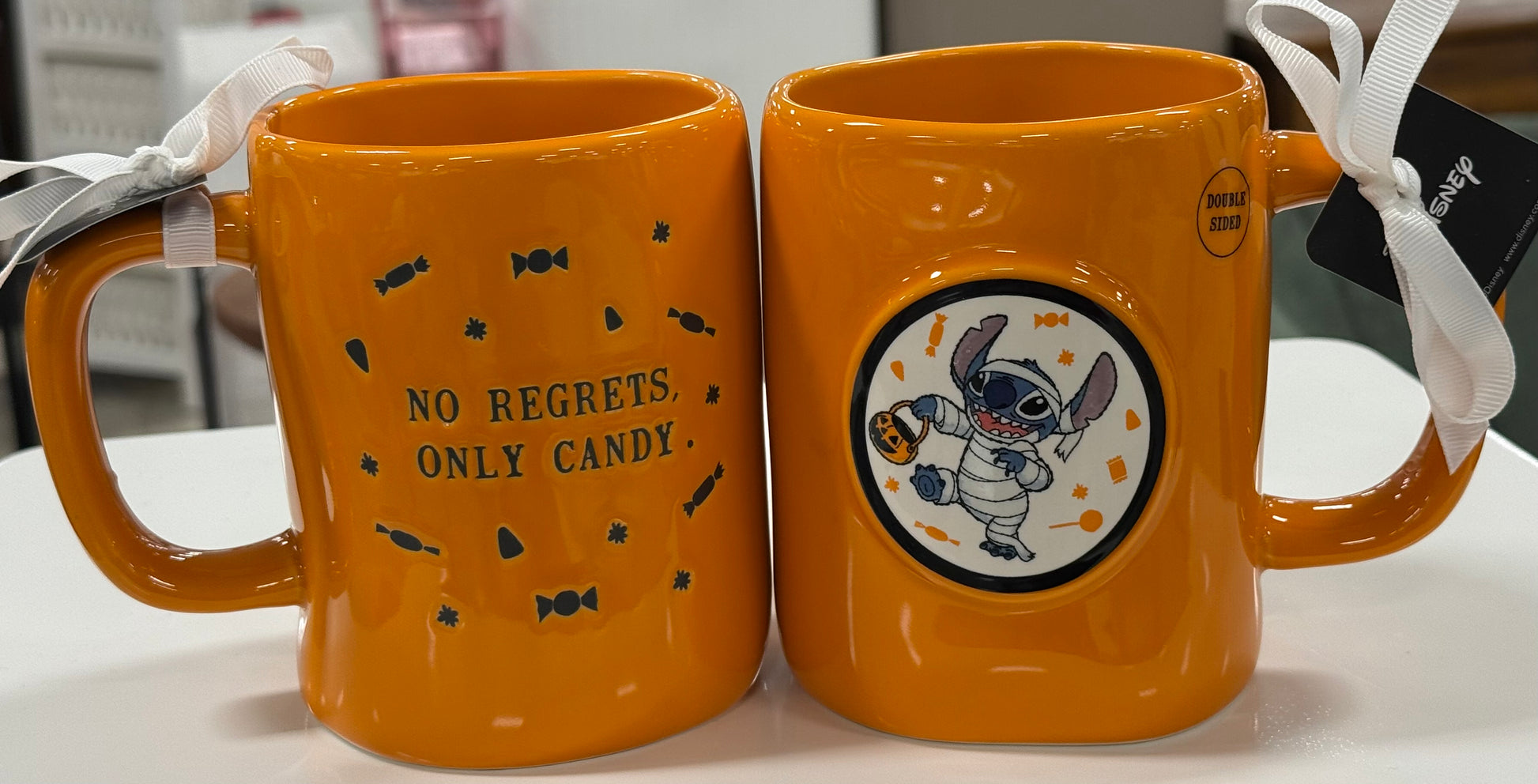 New Rae Dunn x Lilo & Stitch orange ceramic coffee mug NO REGRETS ONLY CANDY