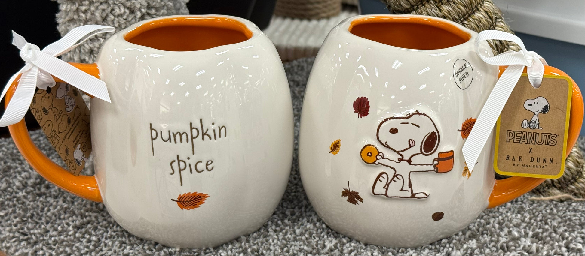 New Rae Dunn x Peanuts Snoopy ceramic fall coffee mug PUMPKIN SPICE