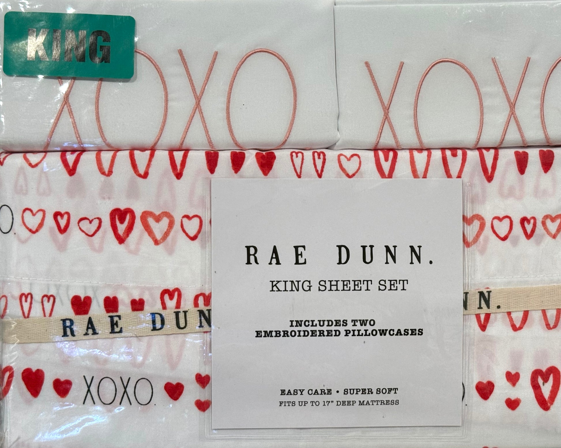 New Rae Dunn XOXO heart print KING size bedding sheet set