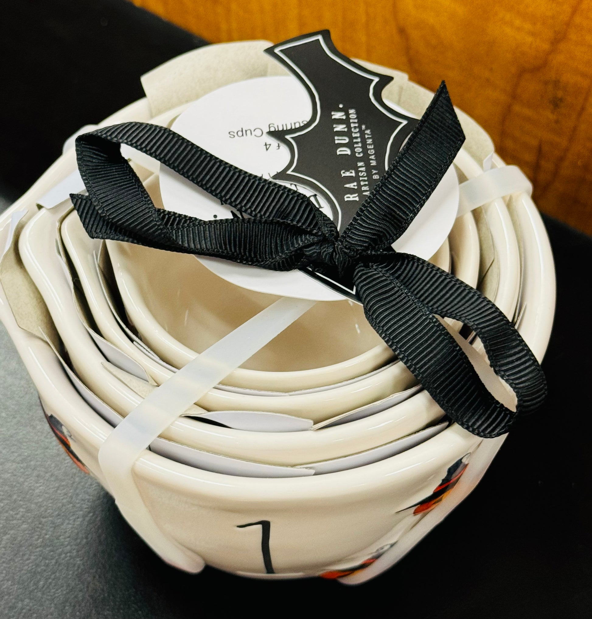 New release Rae Dunn white pumpkin face ceramic measuring cup set