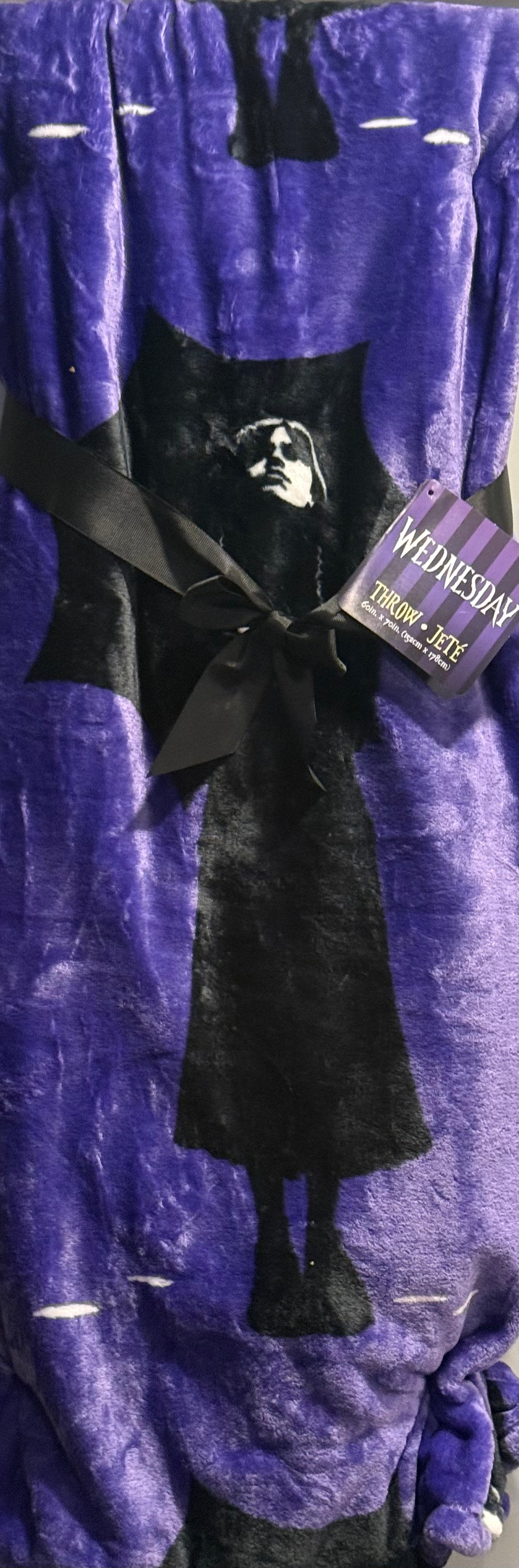 New WEDNESDAY ADAMS purple Halloween throw blanket bedding 60x70