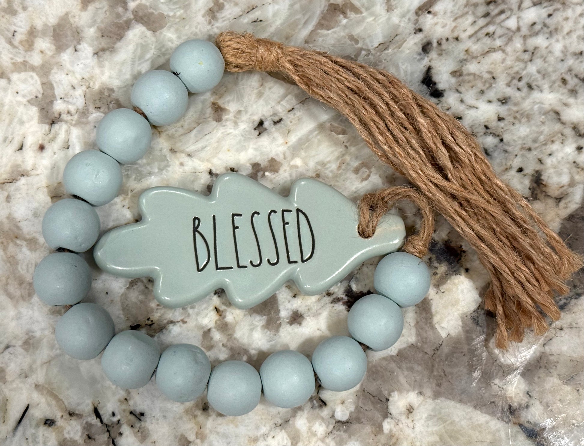 Rae Dunn blue 5” ceramic beaded garland tray decor