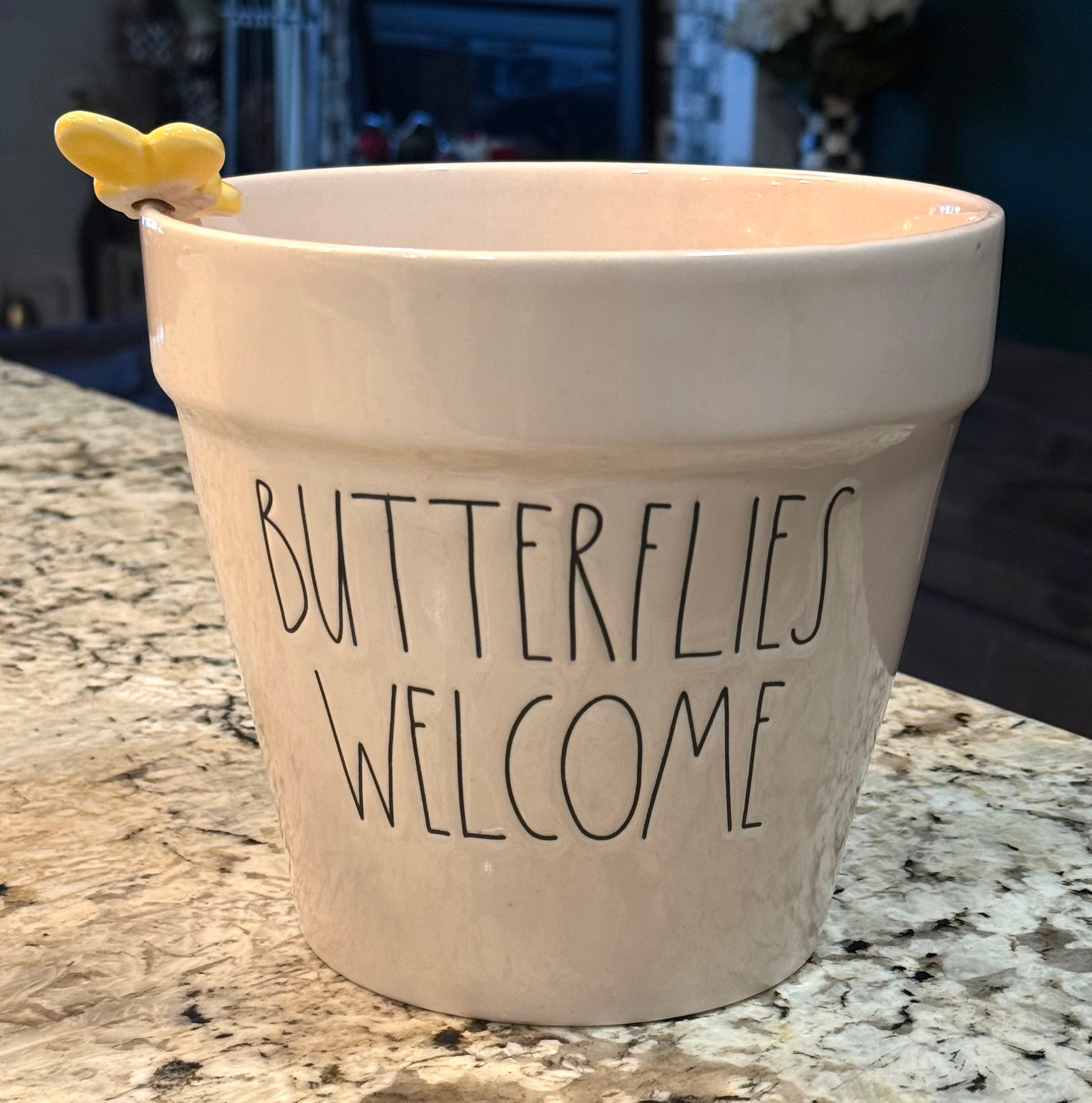 Rae Dunn large ceramic green garden planter decor BUTTERFLIES WELCOME