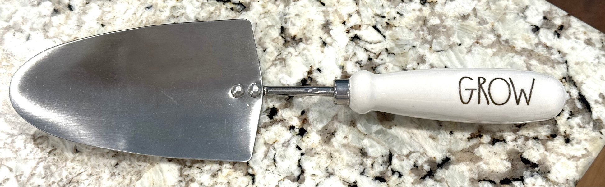 Rae Dunn white ceramic handled garden tool GROW shovel