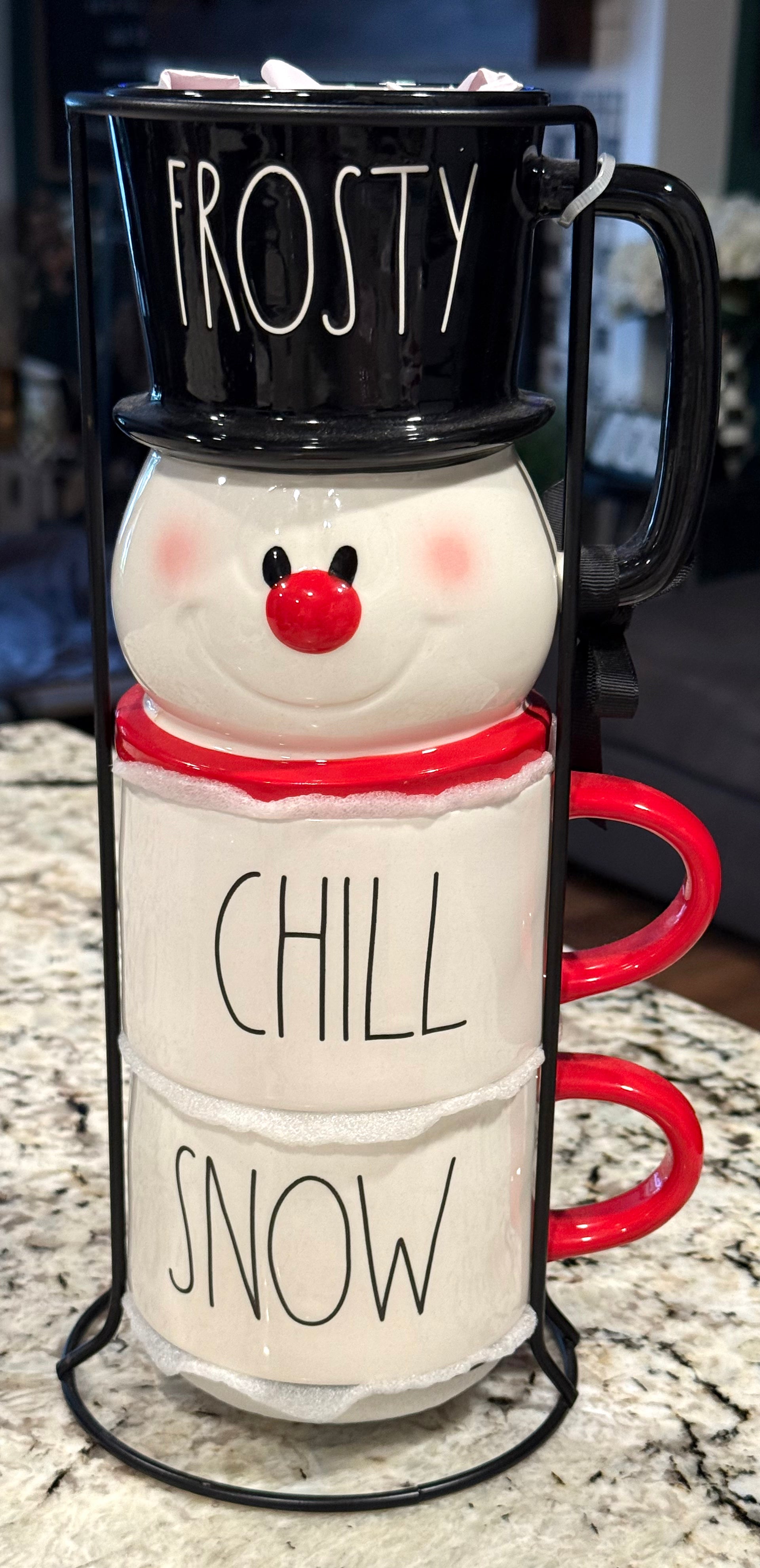 New Rae Dunn x FROSTY THE SNOWMAN ceramic mug stacker set